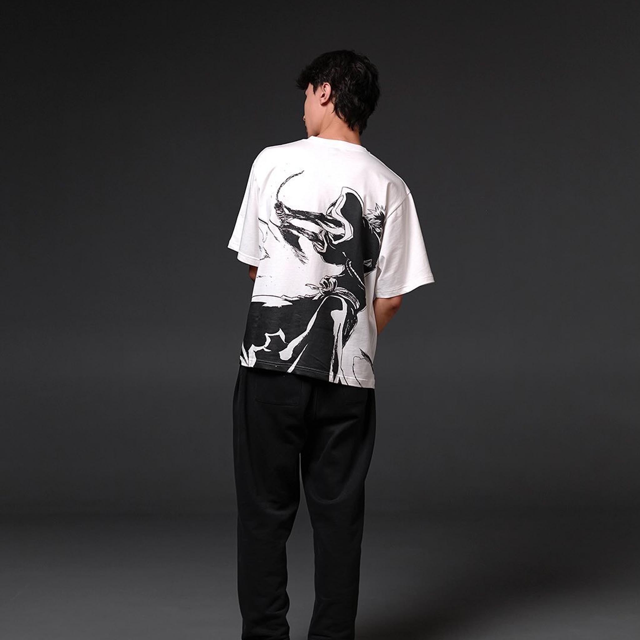 Step into the battlefield with Ichigo Kurosaki, the soul reaper who carries the weight of two worlds. This oversized tee features a dynamic back print of Ichigo mid-strike — capturing his fierce determination and unstoppable will. Built for warriors at heart, this piece is your statement of strength.